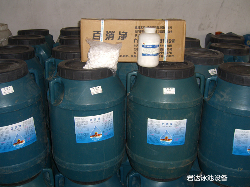 游泳池消毒藥劑的使用有效的防止了水中細菌超標及水體發綠是一種廣譜、高效的泳池消毒藥劑。